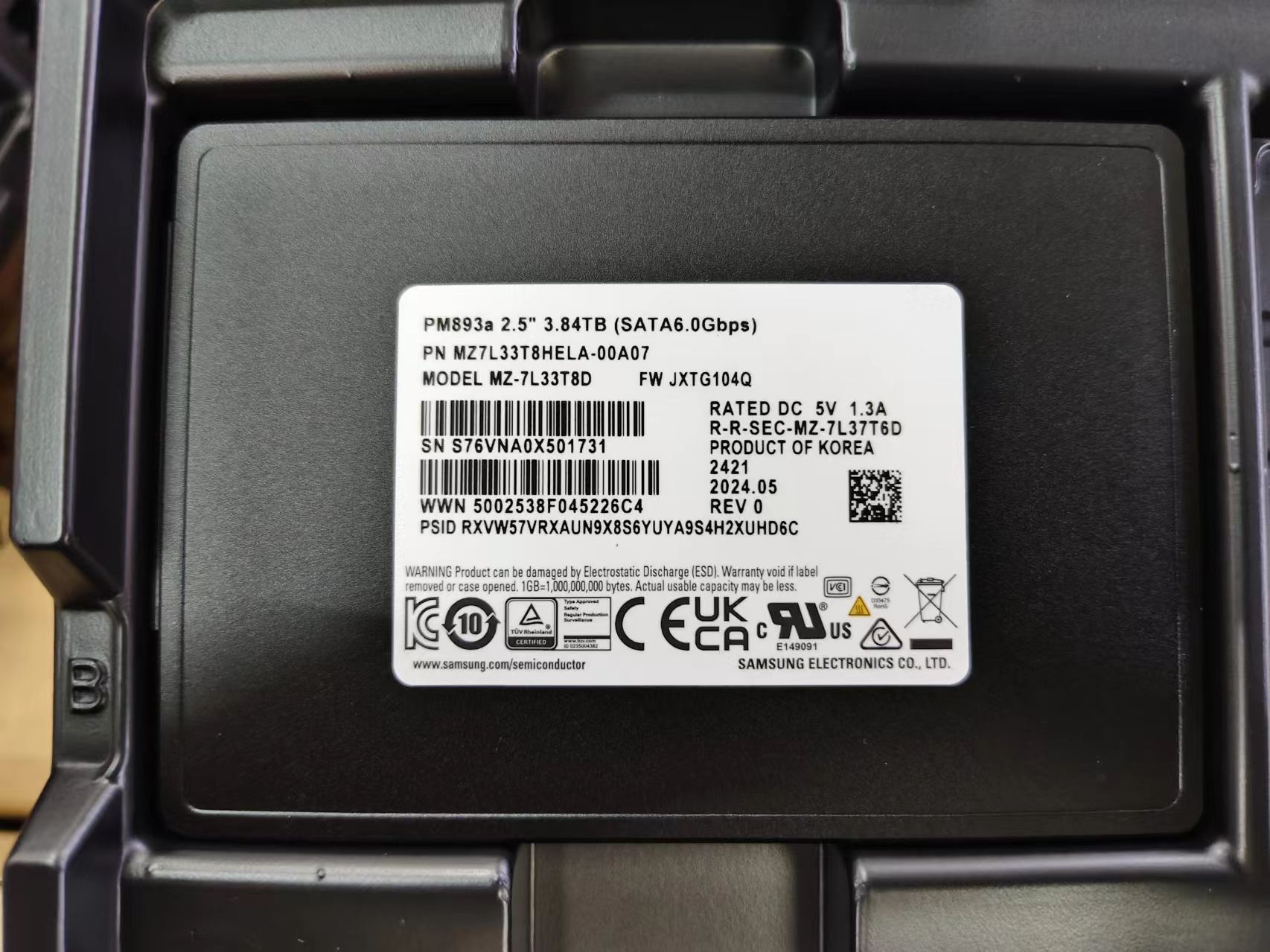 MZ7L33T8HELA-00A07/00B07三星PM893a 3.84T 2.5寸SATA3企業(yè)級(jí)SSD
